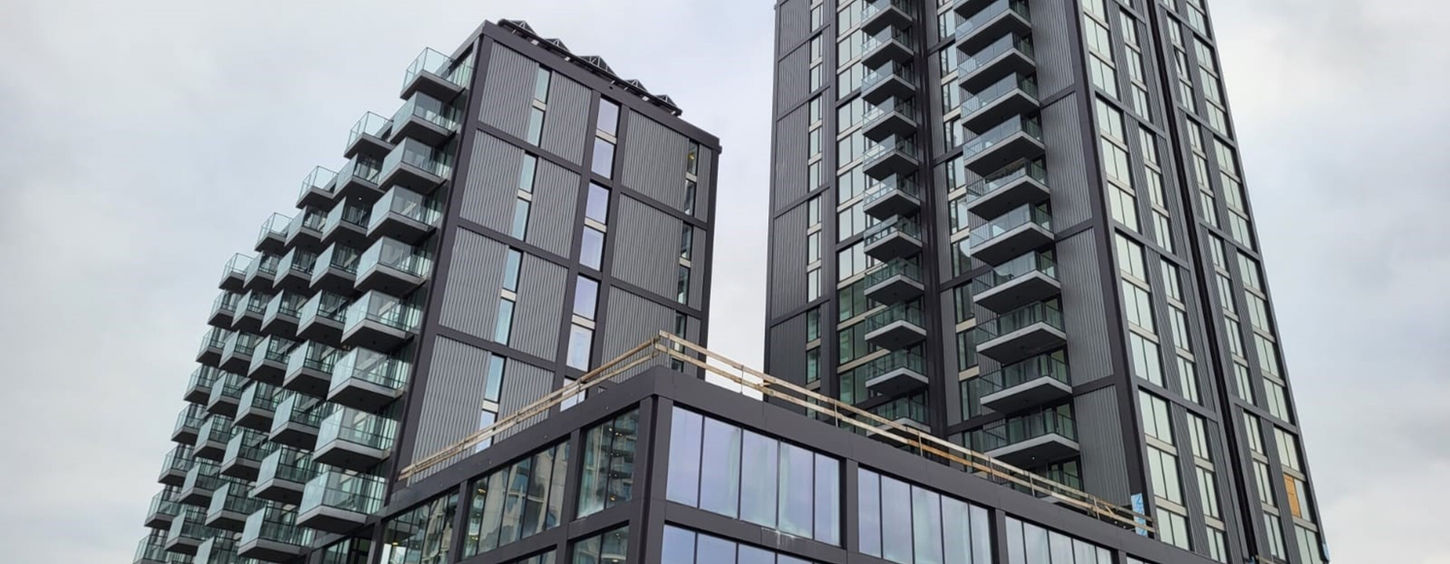 Ca. 7057m2 HSB, 4775m2 aluminium composiet en 3449m2 profielplaat gevelbekleding.